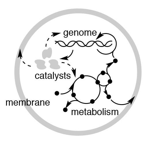 How did life first originate on this planet? Even the most minimal cell needs three subsystems: to convey information, to create compartments, and to catalyse metabolic reactions. But did these all arise together at the origin of life? Or did one form first? How could the molecules that create these subsystems assemble in the first place?