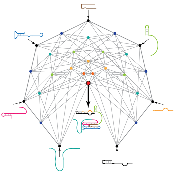 Work by Hannes Mutschler, in Philipp Holliger’s group, in the PNAC Division at the LMB, has uncovered a plausible pathway. In this scenario, pools of short RNAs, which emerge spontaneously by various routes from prebiotic chemistry, can acquire the ability to self-organise into networks that step-by-step “stitch together” much longer RNAs. This process can be greatly accelerated by exposing the RNA pools to freeze-thaw cycles – which might have occurred on the early Earth through day/night or seasonal temperature fluctuations or as the result of geothermal activity. Such freeze-thaw cycles, changing over and over again from a frozen to a liquid state and back, appear to help RNAs to fold into functional structures – a so-called RNA “chaperone” effect. In modern cells, such chaperone activity is crucial for RNA function and usually carried out by proteins. Thus, the same task that in modern biology requires complex protein machines, can in principle, be performed by simple physicochemical processes.