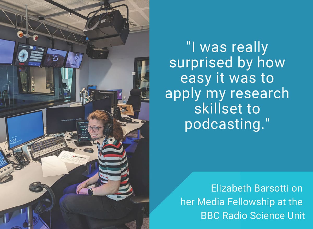 Here, Elizabeth reflects on her time with the BBC, including surprising similarities between research and podcasting, and how transferable her skills are.