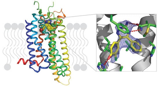 Heptares was co-founded in 2007 by Richard Henderson and Chris Tate, LMB group leaders in the Structural Studies Division. It was set up to exploit their pioneering technology to stabilise G-protein-coupled receptors (GPCRs). GPCRs are an important family of proteins found in cell membranes. They are responsible for triggering responses inside cells to a number of external factors such as hormones, neurotransmitters and sensory stimuli. About a third of all commonly prescribed drugs, such as beta-blockers and anti-migraine drugs, specifically interact with these receptors. Understanding their structure at a molecular level helps us to design new and more effective drugs to combat many human illnesses.