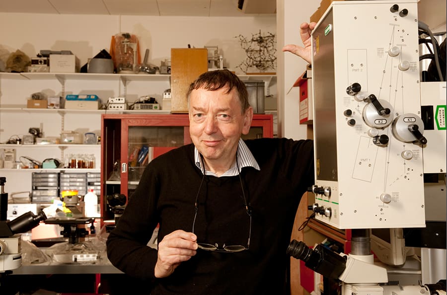 I am a biologist, microscopist and designer of optical instruments. In the contractile organelle of the protist Vorticella, I discovered that the dominant component was a 20,000 molecular weight calcium-binding protein closely similar to centrin, which is found in all cells. In 1981, I moved to the LMB, and helped John White, Michael Fordham and Richard Durbin to develop a laser-scanning confocal microscope, which was soon in use worldwide. I was seconded by the MRC to the manufacturer Bio-Rad for 17 years and designed new confocal models and the production jigs for their manufacture. John White and I were the first to demonstrate the use of a Ti-sapphire laser for two-photon imaging using a prototype laser built by Allister Ferguson at the University of Strathclyde, which was later universally accepted as the best laser source for this purpose.